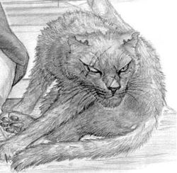 In a passing reference in Witches Abroad Nanny Ogg said that Greebo was a demon ("Just between you and me, he's a fiend from hell"), possibly indicating that Greebo is indeed demonic, partially due to Nanny's insistence otherwise that Greebo is a gentle kitten. In addition to his other qualities, he is pursuing a study in inbreeding with all of the other cats in Lancre that are related to him (which by dint of some effort is all of them, as he is currently every male ancestor for at least 30 generation), which may be involved in the "raw sex" aura he possesses mentioned above. He has also seriously surprised a she-bear (he had also killed and eaten half of one before) and chased a female wolf up a tree.